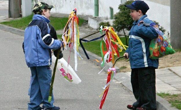 Již brzy po osmé ráno mne chlapec nedočkavě vyhlížel. Stál se svou sestřičkou u domovních dveří s žilou v ruce a batůžkem na zádech. Cestou k první tetičce s radostí mával šlahačkou a předvedl mně svou kolední říkánku, kterou pak při každé návštěvě stále zkušeněji opakoval. S přáním zdraví jsem se přidal i já se svým ozdobeným vrbovým proutkem, a zatímco chlapec ukládal do batůžku svou výslužku, já s opatrností sobě vlastní zdolával na zdraví symbolickou sympatickou štamprličku…