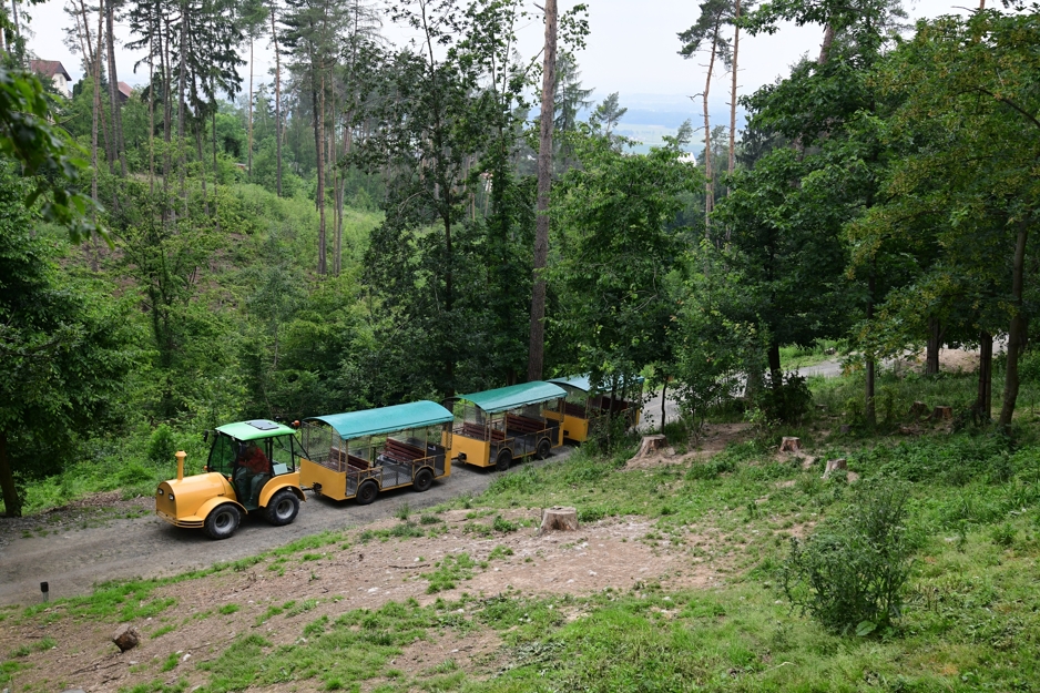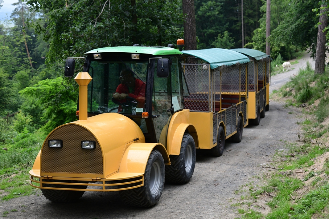 Vláček brázdí všechny části safari zhruba v půlhodinových intervalech. Cena jízdenky je 50,- Kč, jeho kapacita 25 míst. Do vláčku stejně jako do volných výběhů mají zákaz psi jakékoliv velikosti. Vláček vyjíždí od 9:00 s poslední jízdou v 16:45 od pavilonu Kalahari.