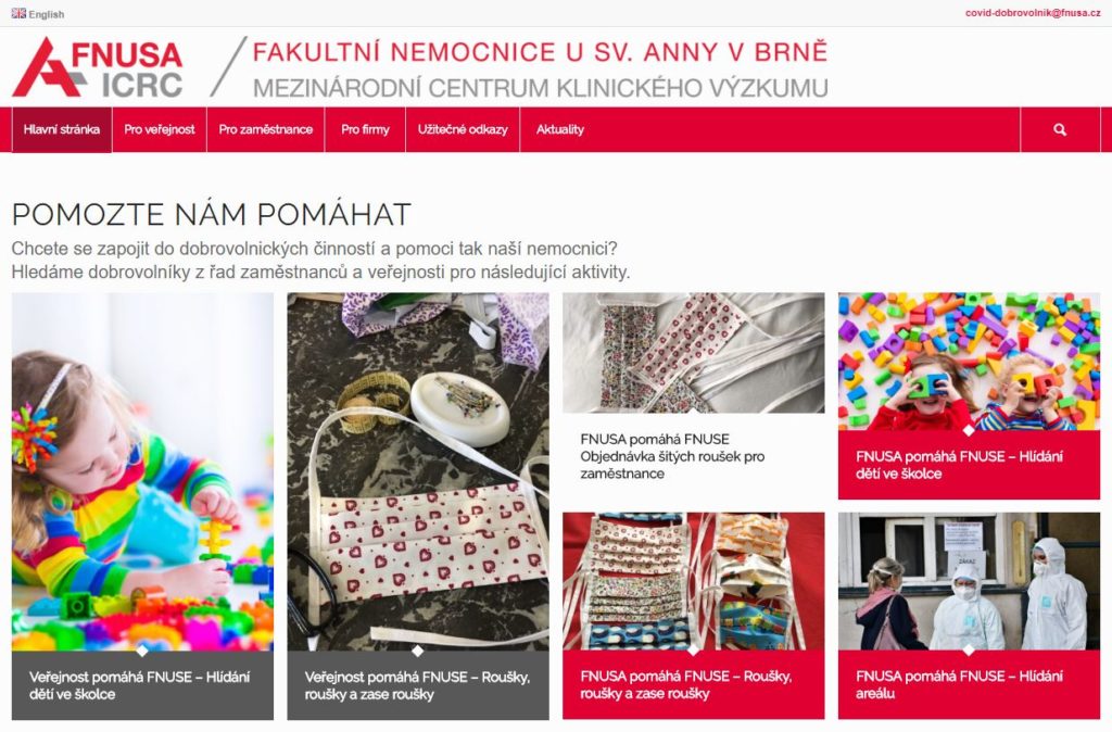 Na webu se lze dočíst, co nemocnice nejvíce potřebuje, jsou tam informace k případné materiální a finanční podpoře a také aktuality. “Webové stránky dali během několika málo dní dohromady zaměstnanci Mezinárodního centra klinického výzkumu, které je součástí nemocnice. Své služby nabízejí i jako dobrovolníci stejně jako zaměstnanci nemocnice pracující v administrativě,” poznamenala Lipovská.