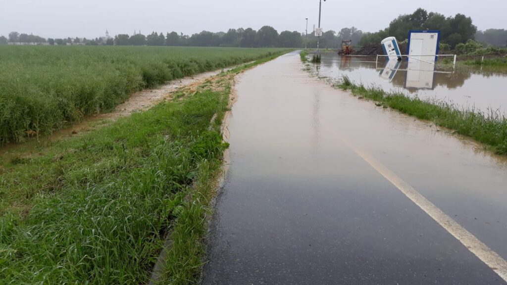 Jinde hasiči čistili bahnem zanesené silnice, do Jeclova na Jihlavsku přiváželi protipovodňové pytle. Protipovodňovou hráz museli stavět i ve Velkém Meziříčí.