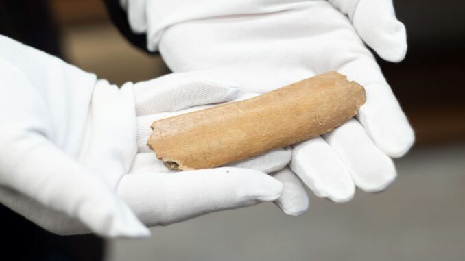 Popsanou kost našli výzkumníci v roce 2017. Následně ji prozkoumal mezinárodní tým složený z vědců z České republiky, Rakouska, Švýcarska a Austrálie. Odborníci zjistili, že jde o nejstarší nápis nalezený u Slovanů.