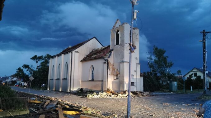 Silná bouře s tornádem zpustošila ve čtvrtek na večer 7 obcí na pomezí okresu Břeclav a Hodonín. Nejpostiženější jsou Hrušky, Lužice, Mikulčice a Moravská Nová Ves. Záchranáři doposud ošetřili přibližně 200 zraněných a potvrzena jsou také tři úmrtí. Lidé v postižených obcích často přišli o střechu nad hlavou. Materiální škody jsou sice pouze lokální, ale i tak značné. Více v samostatném článku.